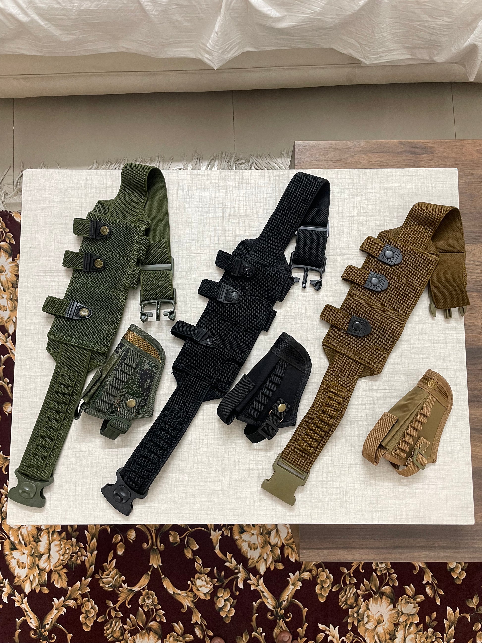 It includes Belly Elastic belt, having 10 rounds space, 1x pstl space, 2x magazines space, made of best quality , top notch lock has been used for firm grip
