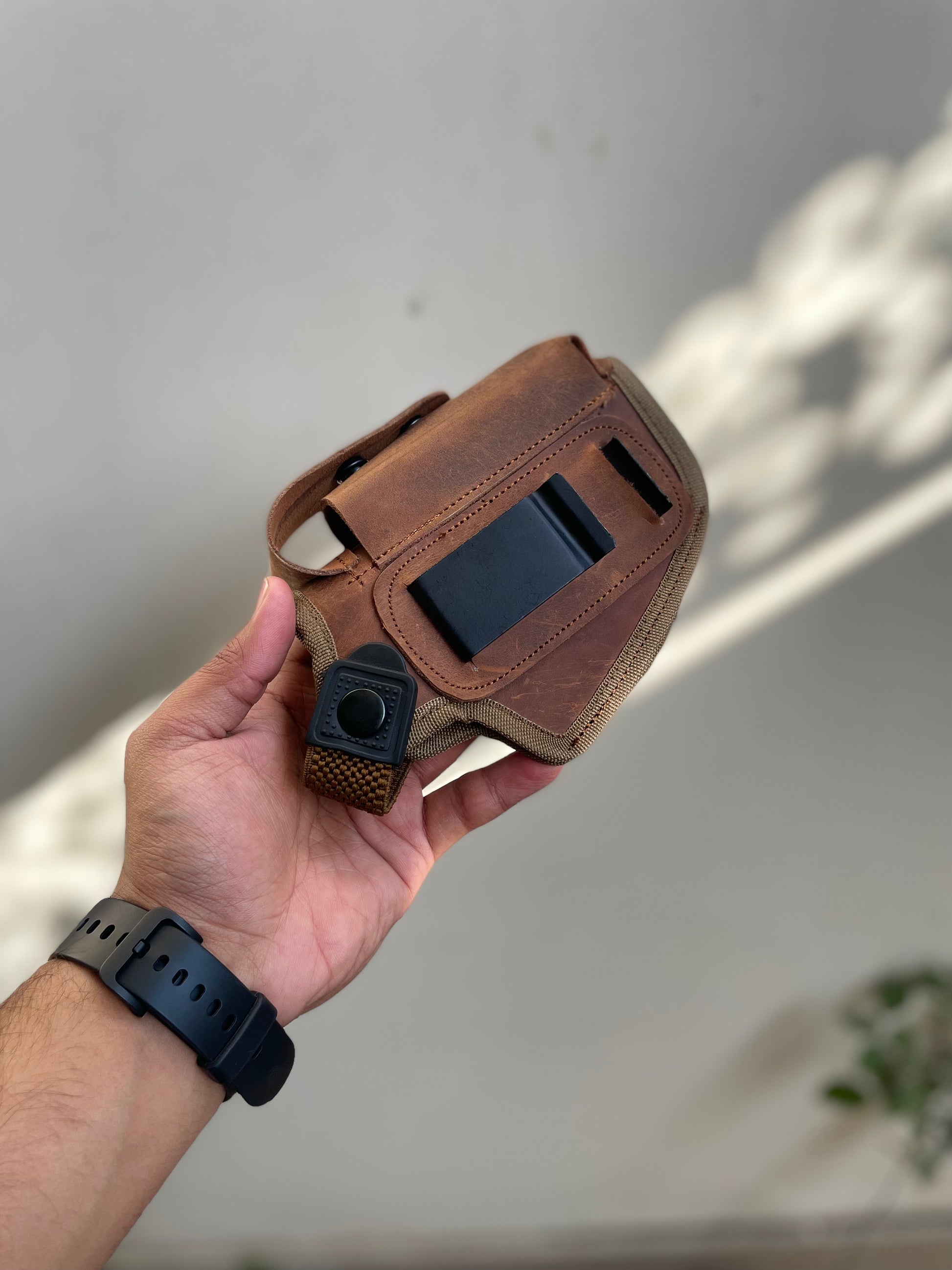 This deal includes a leather clipper, having changeable iron clip. fur is used inside to protect weapon colour, plus having one magazine space at top.